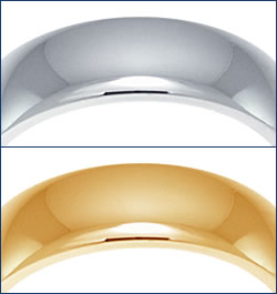We find that platinum is currently the most popular metal choice with 50% of our customers selecting platinum, 35% white gold, and 15% yellow gold. Platinum rings are more resistant to scratching and general wear and tear than white gold rings, but are a bit heavier and more expensive. White gold is much cheaper than platinum, but it is also softer so more likely to become marked under duress and show scratches and abrasions.